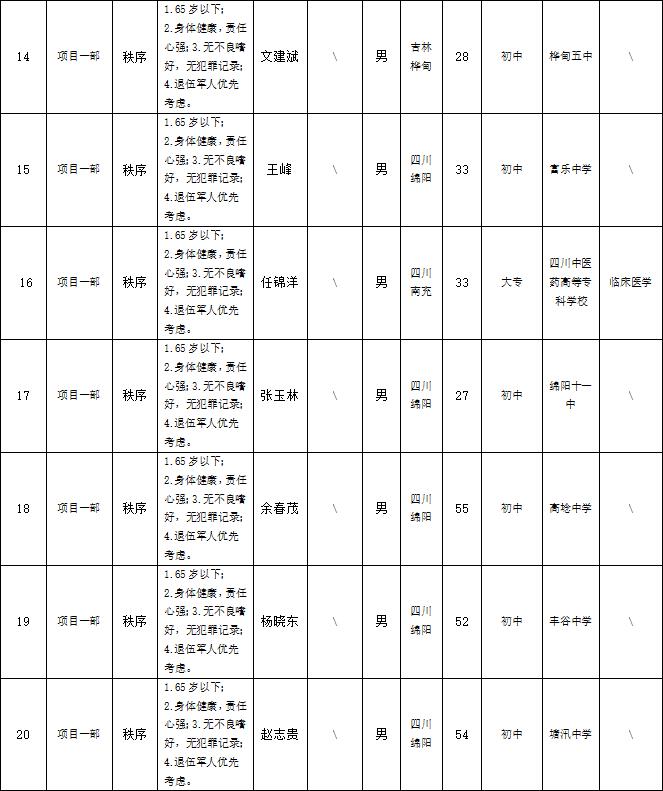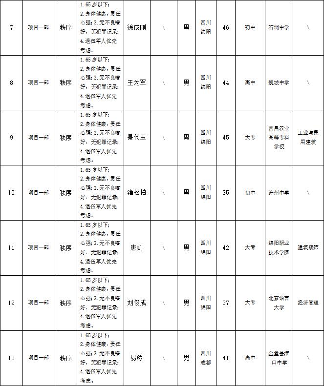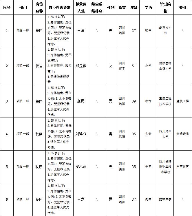 根據(jù)綿陽市康來物業(yè)服務(wù)有限公司發(fā)布的招聘公告及招聘相關(guān)規(guī)定,經(jīng)面試等程序,擬錄用以下人員到各項目部工作,現(xiàn)予以公示,具體情況如下: