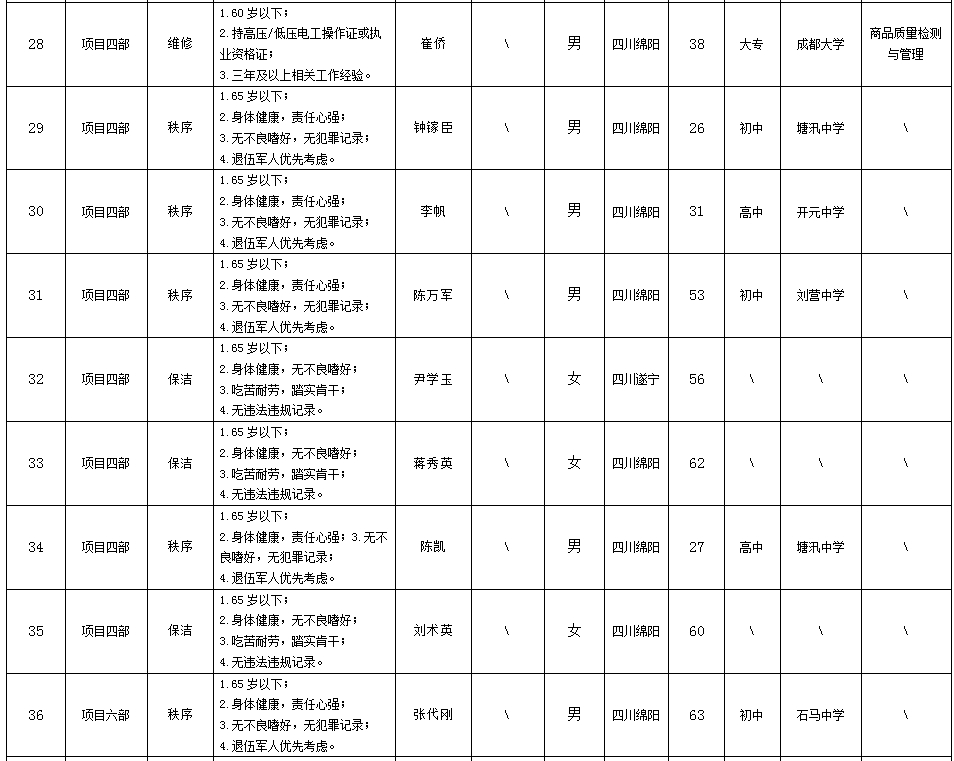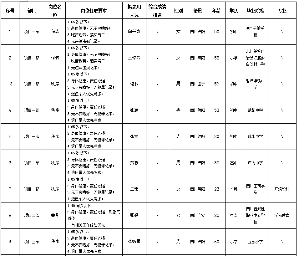根據(jù)綿陽市康來物業(yè)服務(wù)有限公司發(fā)布的招聘公告及招聘相關(guān)規(guī)定,經(jīng)面試等程序,擬錄用向興容等同志到各項(xiàng)目部工作,現(xiàn)予以公示,具體情況如下: