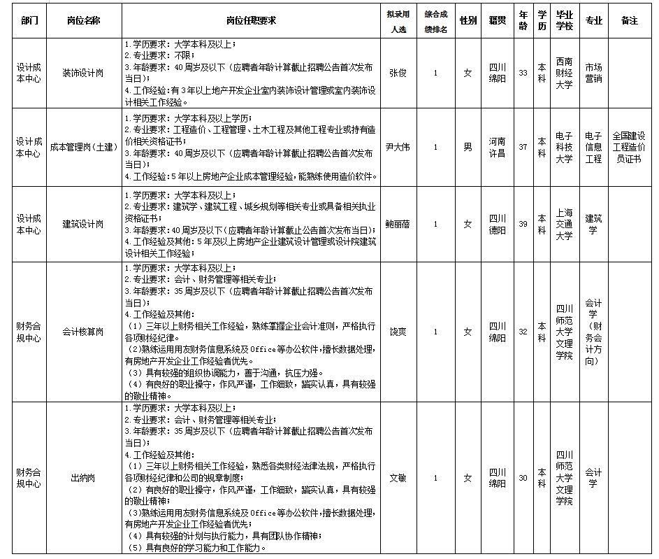 【公開招聘】綿陽(yáng)市綿投置地有限公司關(guān)于裝飾設(shè)計(jì)崗等崗位擬錄用人選的公示