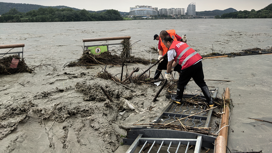 連日暴雨,上游洪峰裹挾漂浮物洶涌而下。危急時刻,綿陽三江半島景觀廊橋的圍欄在短短30分鐘內(nèi)被快速放倒,為洪水開辟通道。近日,這一高效處置場景獲央省媒體聚焦報道。背后,是越王樓公司作為國企,七年如一日守護城市安全的用心與智慧。