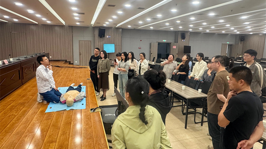 講座中,專家團(tuán)隊的四位醫(yī)生分別從甲狀腺健康科普、壓力管理與情緒調(diào)節(jié)、日常急救知識普及三個方面展開專業(yè)講解,并通過現(xiàn)場演示幫助員工掌握心肺復(fù)蘇、海姆立克急救法等技能。講座現(xiàn)場氣氛熱烈,互動頻繁,干貨滿滿的分享讓參與員工受益匪淺。